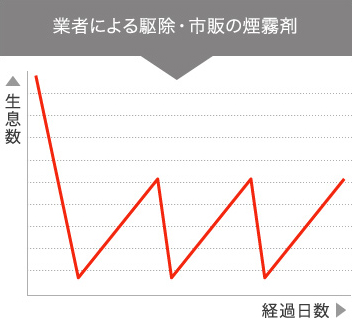 駆除の場合、その場にいるゴキブリは駆除できますが、卵や外部から侵入するゴキブリには何の効果もありません。